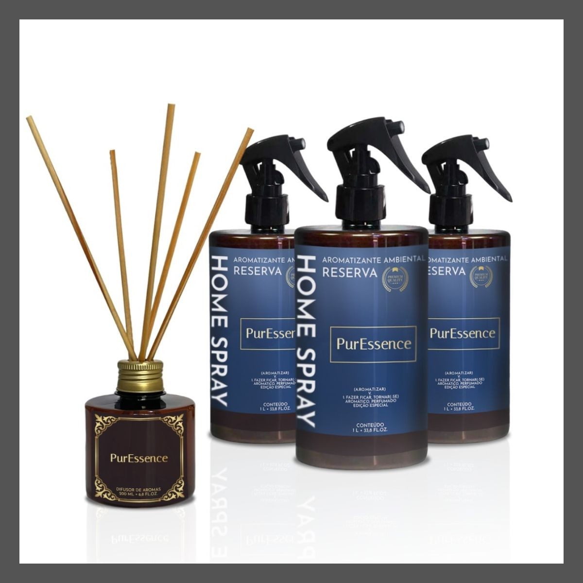 Contém: 3 Unidades Home Spray 1 Litro + Brinde Difusor varetas 200ml